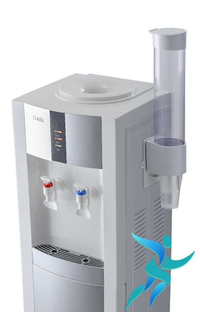 Для удобства розлива воды в кружки или стаканы предусмотрены два крана ("горячий" и "холодный") с системой "нажми кружкой". Краны оснащены внутренней резьбой, что упрощает их замену при необходимости. Цветовое исполнение: белая основа с серебристыми акцентами.