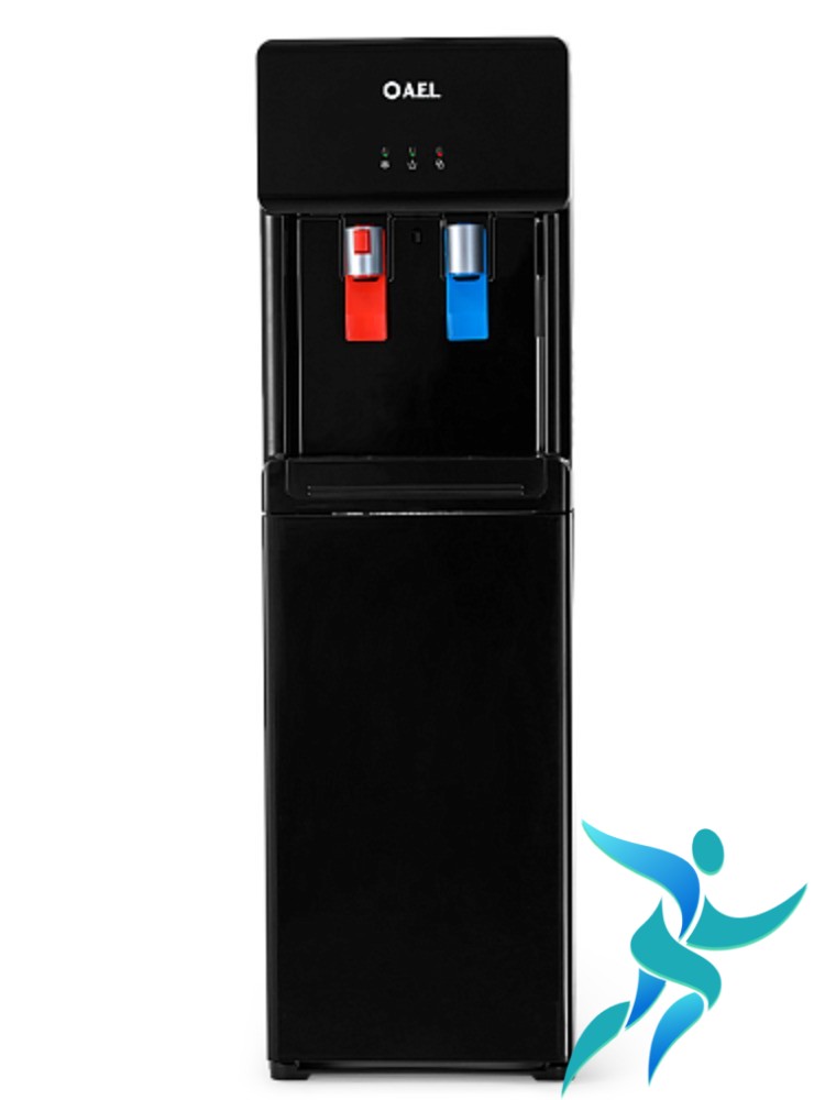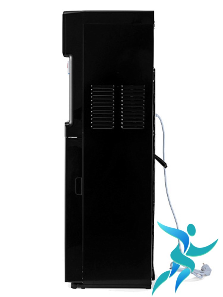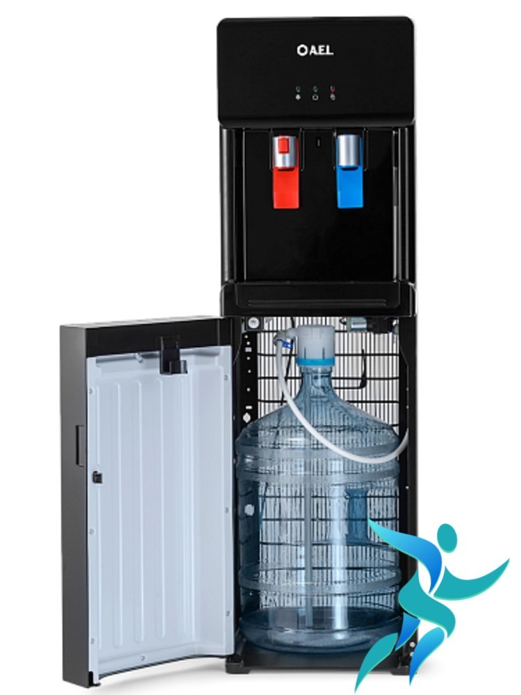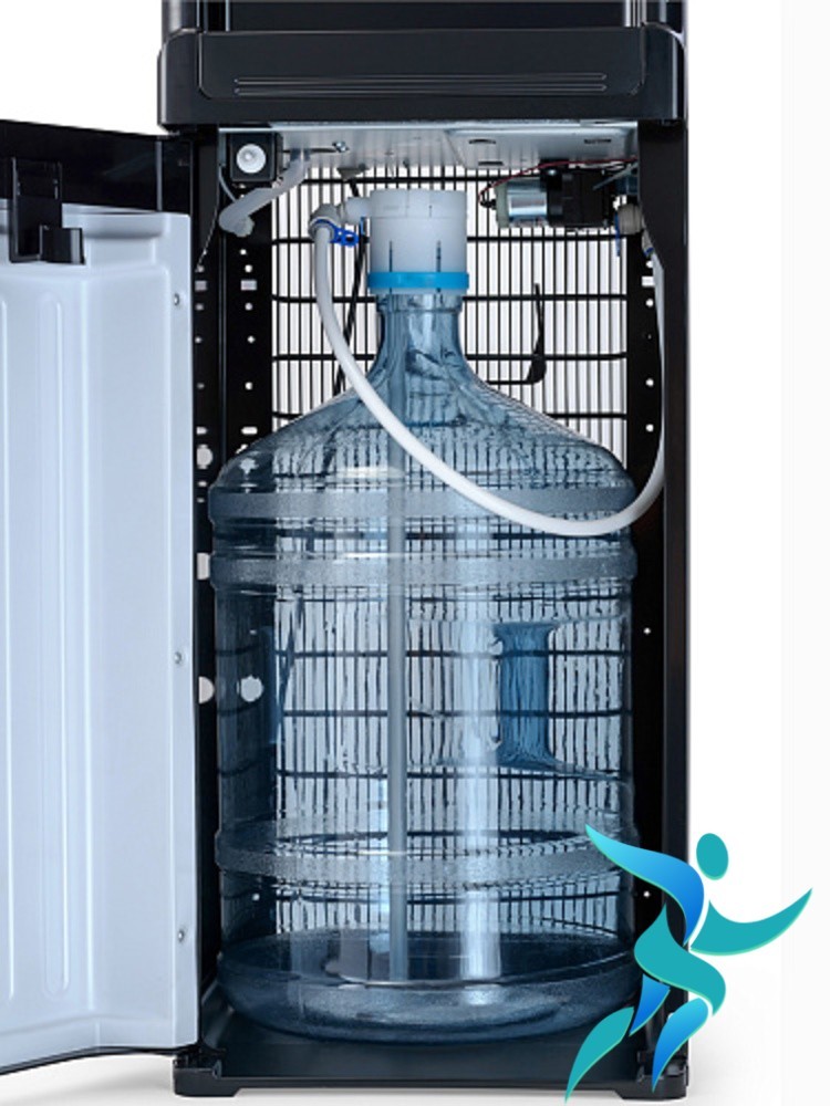 Кулер компрессорного типа с нижней установкой бутыли. Вам не придется поднимать тяжелую бутыль, чтобы установить ее в аппарат. Достаточно снять крышку, установить заборную трубку и поместить бутыль в специальный шкафчик внутри кулера.